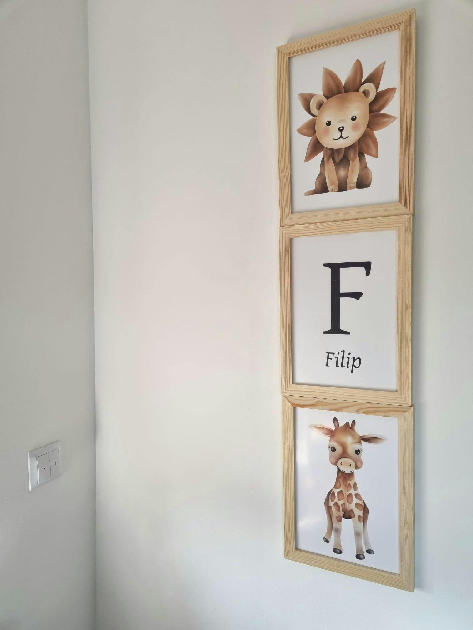 Zestaw trzech plakatów do pokoju dziecięcego – Safari z pierwszą literą imienia oraz imieniem dziecka!